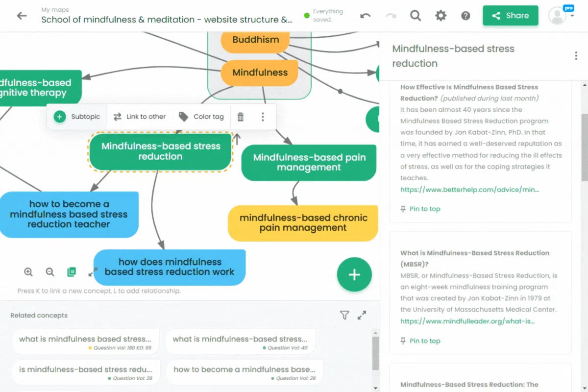 - Research, organize, and visualize your content ideas and keyword research with user-friendly mind maps